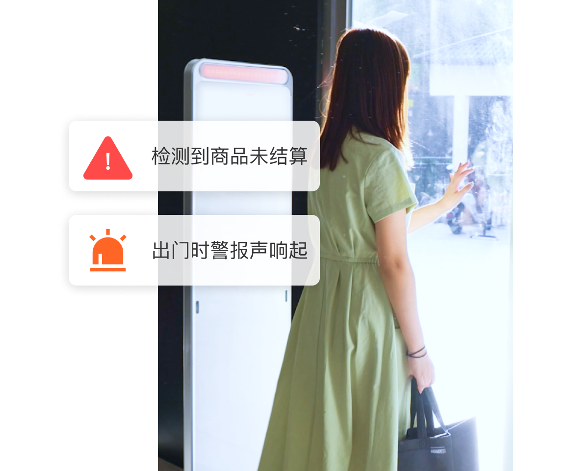 酷柚易汛适配的RFID门禁,智能感应商品结算状态,自动识别出 未付款商品并发出警报,结算防盗一体化,全方位保护商品 安全。
