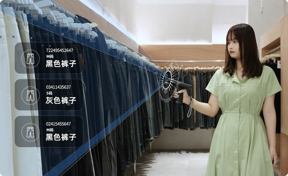 酷柚易汛适配的RFID手持设备,无接触批量读取,相比传统盘点 方式,无需增加任何工作量,绕店一圈即可完成盘点工作!