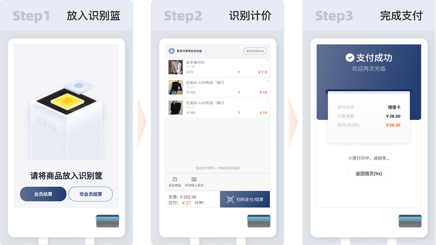 泉州本地潮流品牌,酷柚易汛RFID赋能门店结算区,如今,门店全面开启 RFID 全自助收银模式,无需收银员参与,在大幅提升收银效率的同时,为顾客带来更为便捷、流畅的购物体验,有效提升智慧门店的形象。