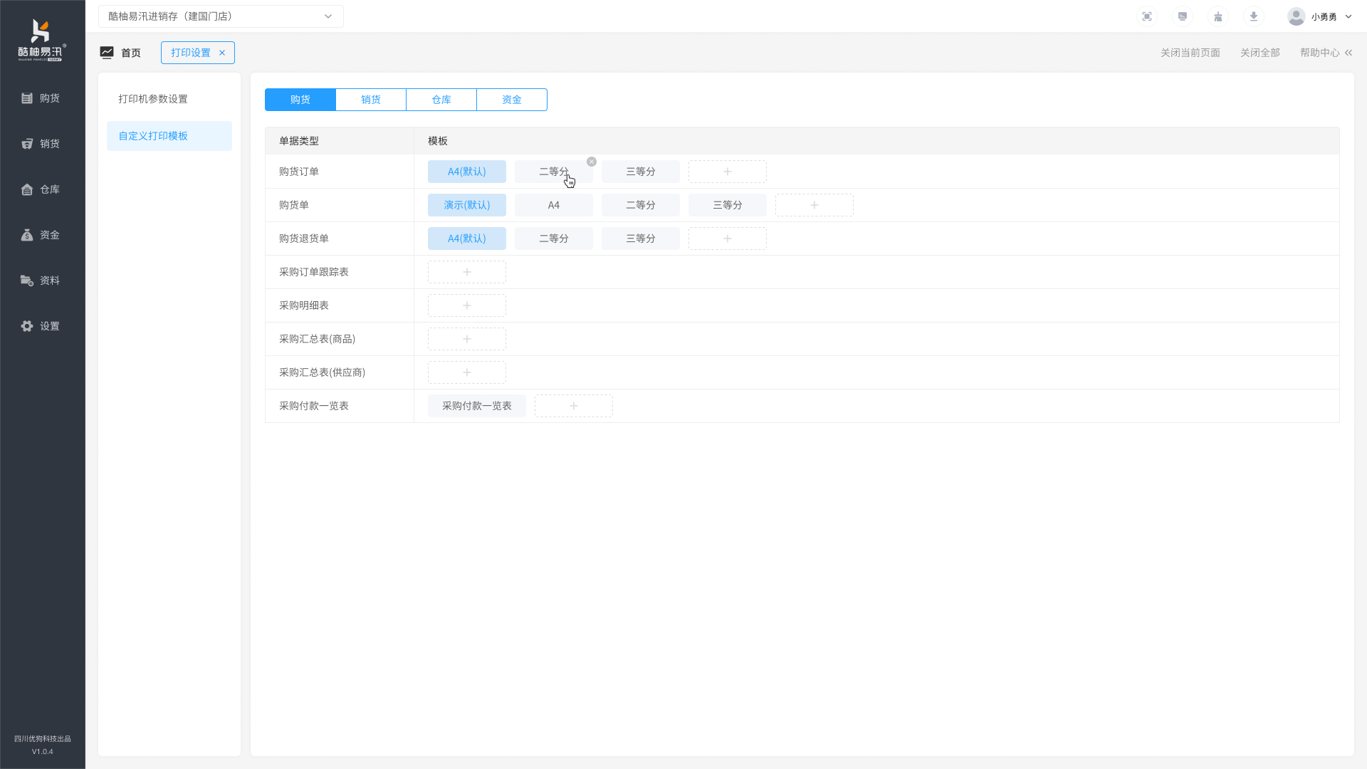 根据公司业务特点,需要自定义设置个性化的打印模板,在线支持销货、购货、仓库和资金类单据。