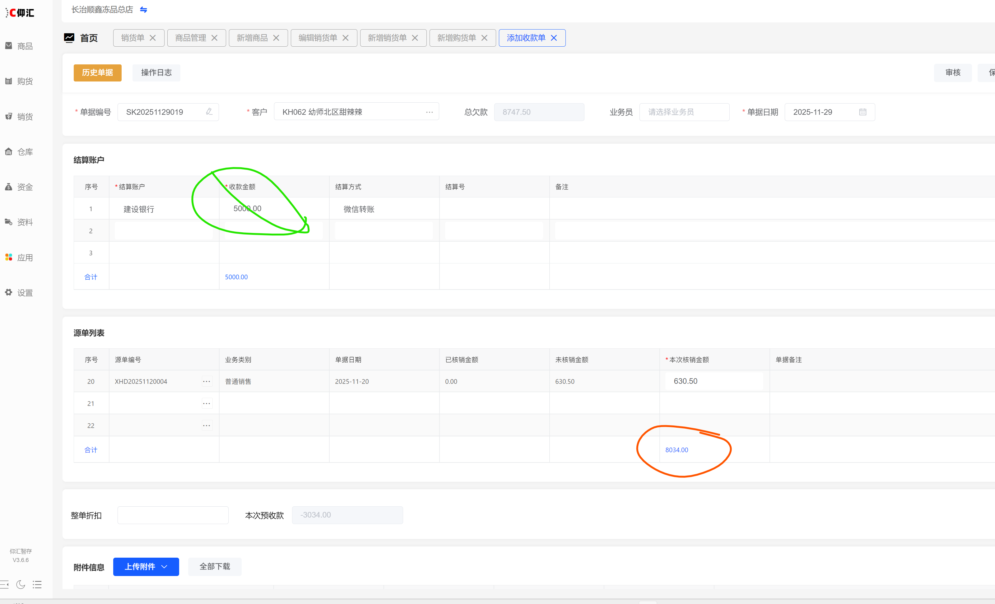 复制销售单会继承上次收款金额导致无法审核必须重新填写本次金额再删除金额才能审核